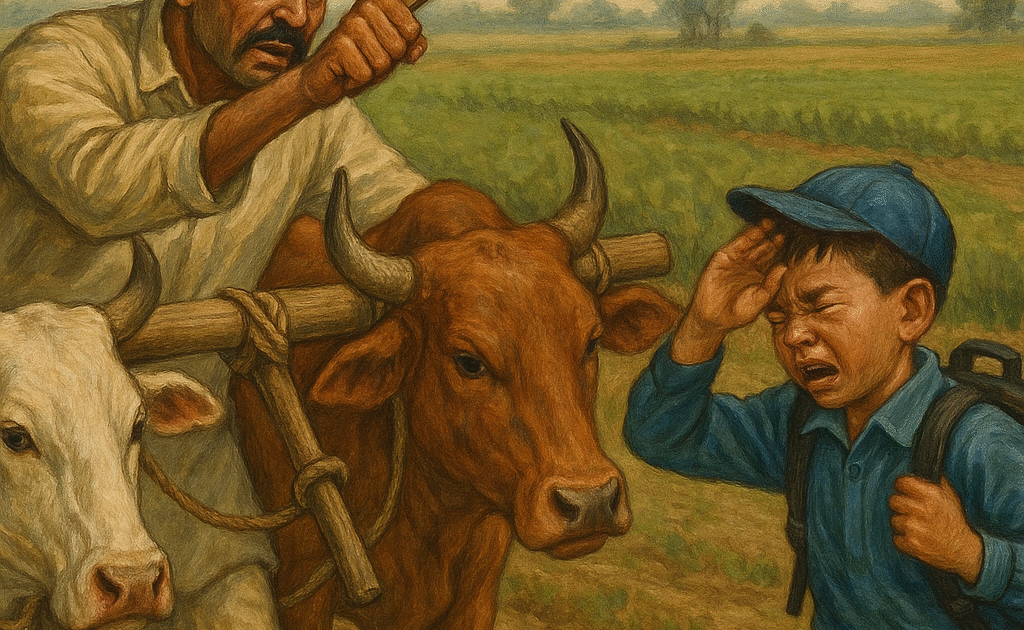 مجھے اپنی قسمت اور بے بسی پہ بھی رونا آرہا تھا لیکن اتنی کم عمری میں الفاظ نہ تھے کہ میں اپنا مدعا صاف اور پورا بیان کر پاتا۔ جس بات کو میں نے اپنے لیے فخر جانا اور والد صاحب سے شاباش لینے کی غرض سے ان کے سامنے اظہار کیا وہی بات میرے لیے سزا کا سبب بن چکی تھی۔ میں حیران تھا کہ میری اس کارکردگی پر تو مجھے داد ملنی چاہیے تھی کہ پہلے ہی دن سارا قاعدہ ختم کر لیالیکن یہاں معاملہ الٹ ہے اورمجھے مار پڑرہی ہے۔